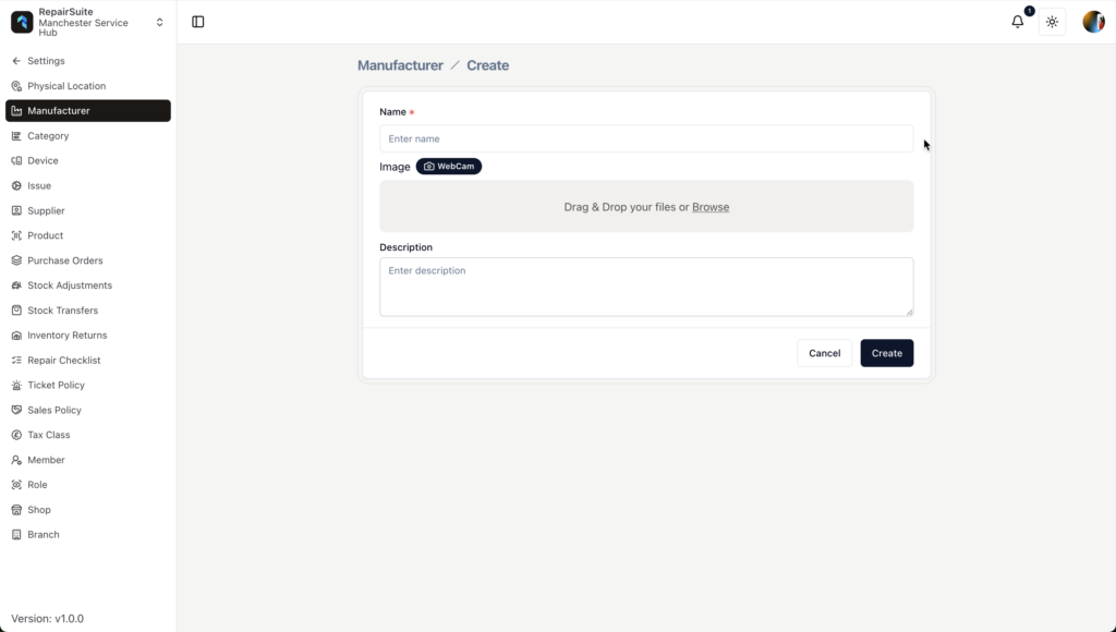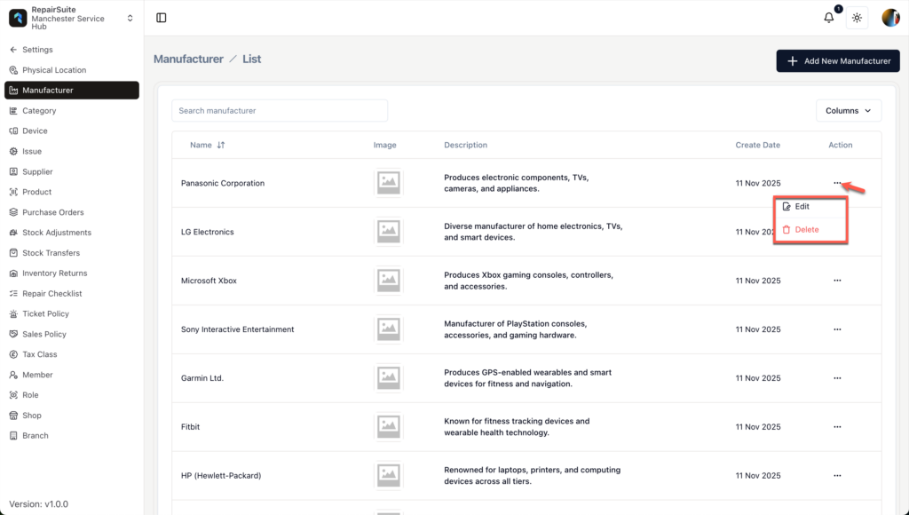 Keeping your manufacturer list accurate ensures better organization, reporting, and workflow efficiency across the system.